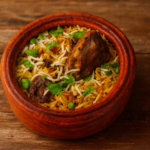Fragrant basmati rice layered with juicy shrimp, delicately spiced for a bold yet refined flavor.